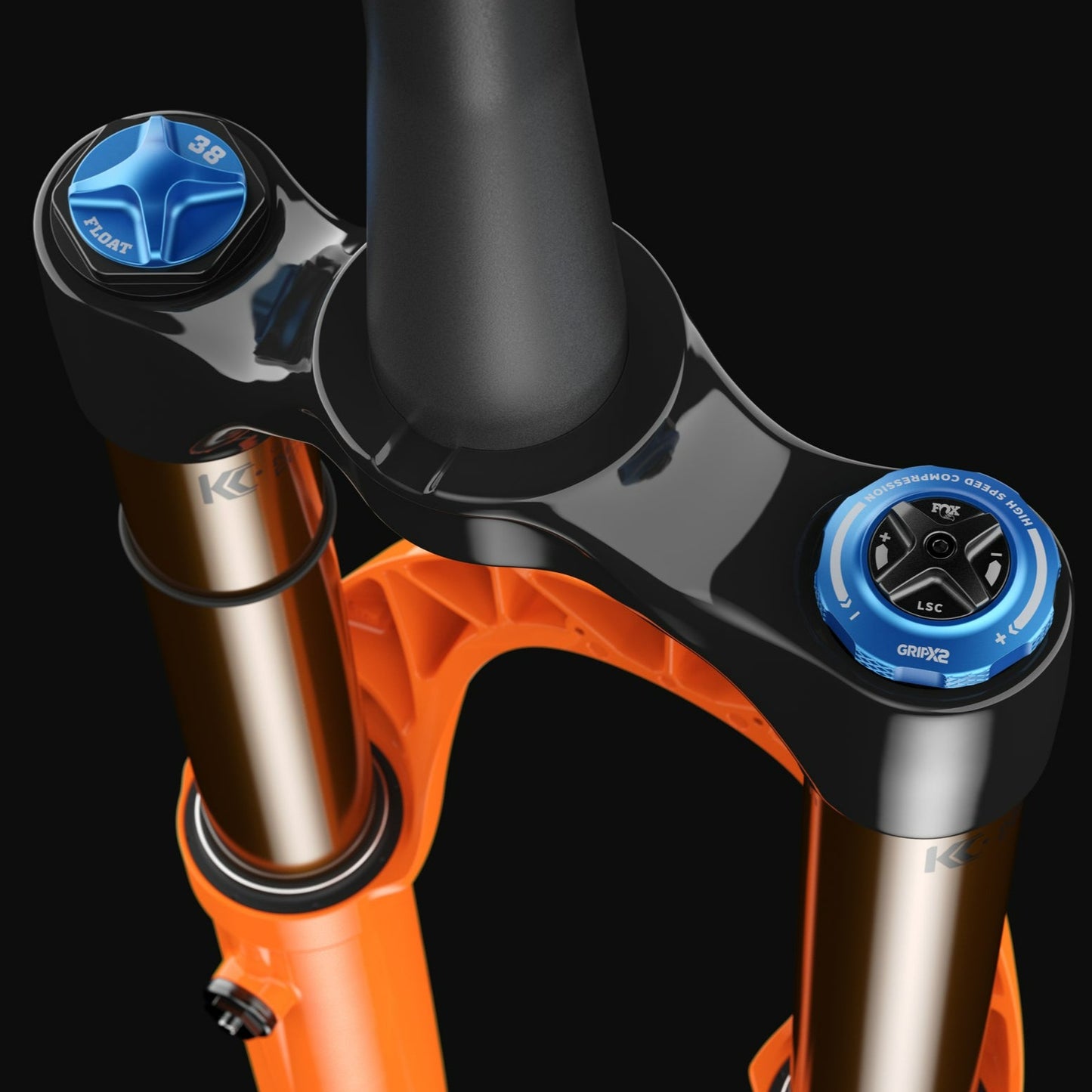 2025, 38, K, FLOAT, 29in, F-S, 180, Grip X2, HSC, LSC, HSR, LSR, Shiny Blk, Kashima/Grey Logo, Kabolt X 110, BLK, 1.5 T, 58HT, 44mm Rake, AM